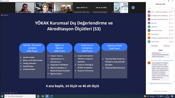 YÖKAK Kalite Buluşmaları kapsamında 12 Eylül 2022 Pazartesi günü saat 14.00'te Prof. Dr. Elif ÇEPNİ tarafından çevrimiçi olarak gerçekleştirilen "Değişim Yönetiminde Gelecek Senaryolarının Kullanımı" konulu toplantıya kurumumuz Kalite Yönetim Koordinatörlüğü katılım sağlamıştır.